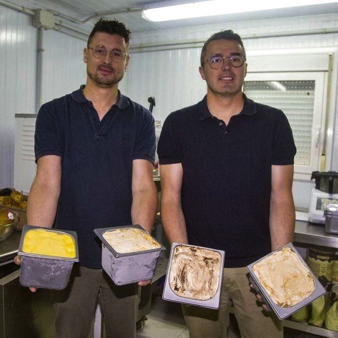 Som en Gerard (enginyer industrial) i en Xavier (farmacèutic), i el 2025 vam decidir que el gelat mereixia una altra història. Més creativa. Més personal. Més atrevida. Per això vam fundar Geliciós SL, a Tàrrega, per portar al món HORECA gelats artesans, únics i fets a mida.